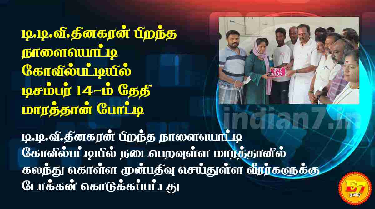 டி.டி.வி.தினகரன் பிறந்த நாளையொட்டி கோவில்பட்டியில் டிசம்பர் 14-ம் தேதி மாரத்தான்