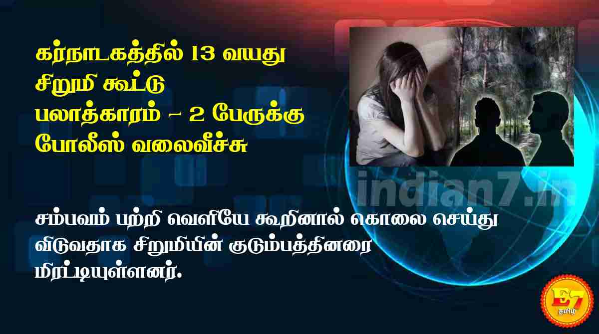 கர்நாடகத்தில் 13 வயது சிறுமி கூட்டு பலாத்காரம் - 2 பேருக்கு போலீஸ்