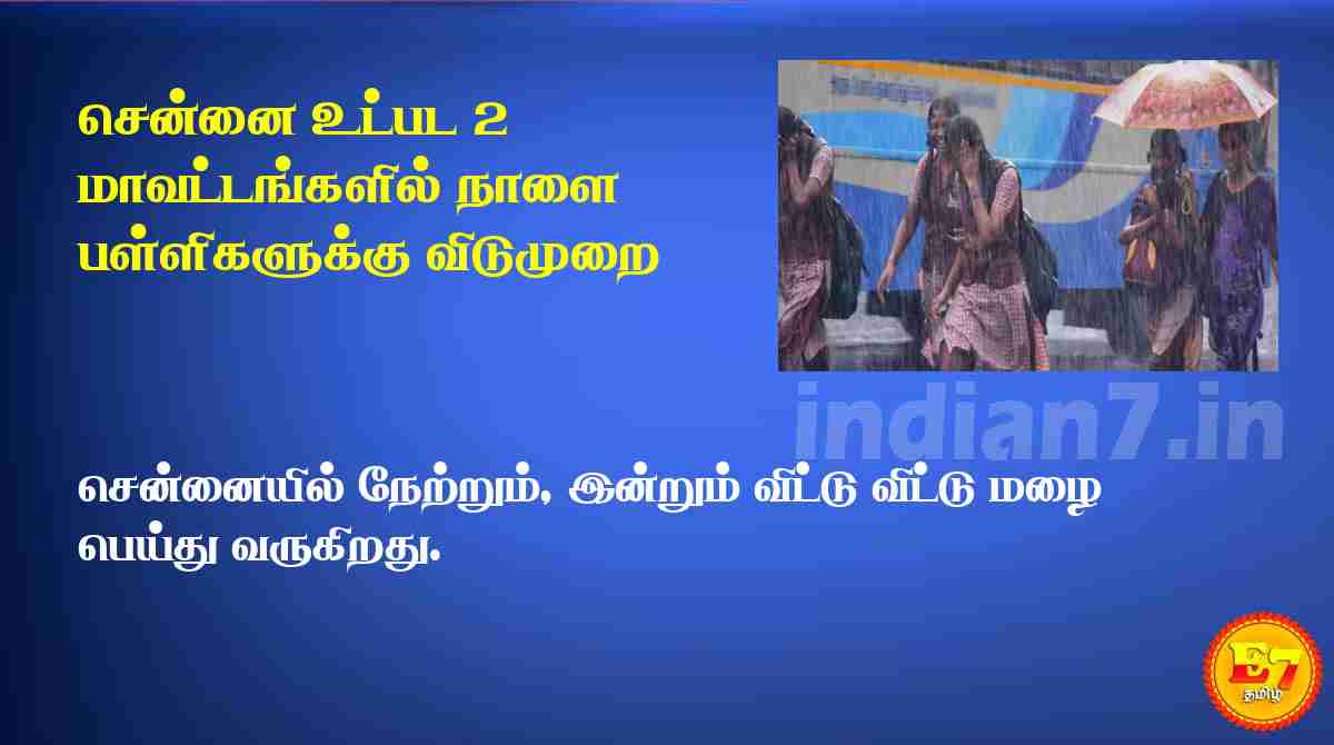 சென்னை உட்பட 2 மாவட்டங்களில் நாளை பள்ளிகளுக்கு