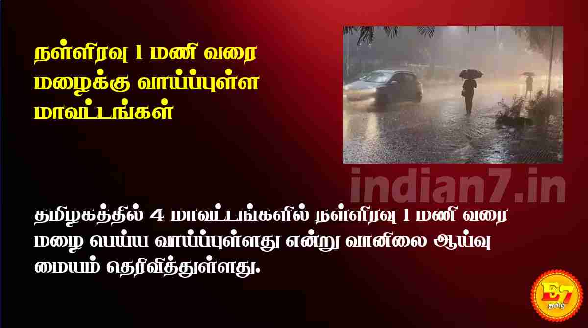 நள்ளிரவு 1 மணி வரை மழைக்கு வாய்ப்புள்ள