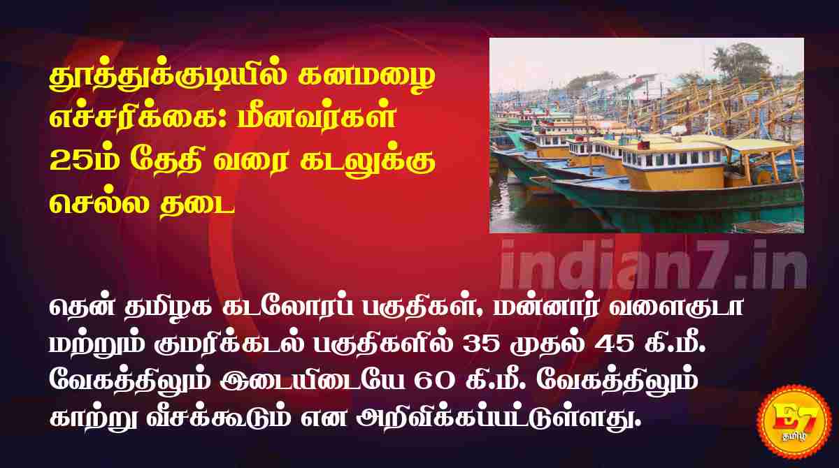 தூத்துக்குடியில் கனமழை எச்சரிக்கை: மீனவர்கள் 25ம் தேதி வரை கடலுக்கு செல்ல