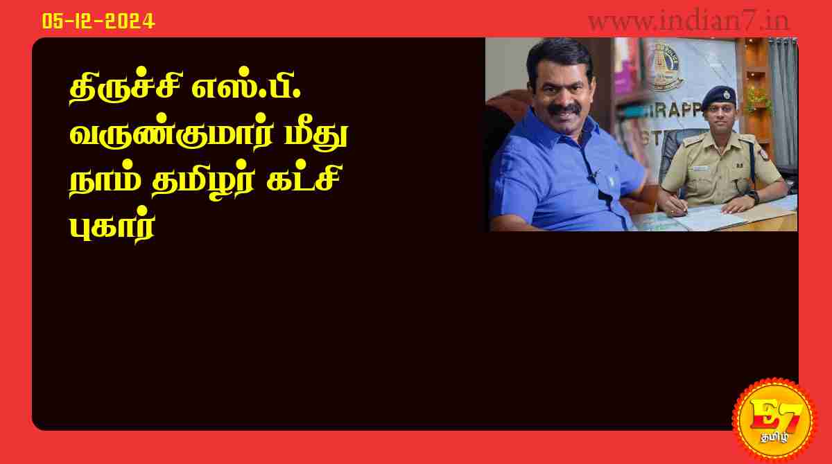 இந்நிலையில் திருச்சி எஸ்.பி. வருண்குமார் மீது தமிழக டி.ஜி.பி. சங்கர் ஜிவாலிடம் நாம் தமிழர் கட்சி சார்பில் புகார் அளிக்கப்பட்டுள்ளது. இதன்படி நாம் தமிழர் கட்சி குறித்து அவதூறாக பேசி வருவதாகவும், பொய் வழக்கு பதிந்து தாக்குதல் நடத்துவதாகவும் நா.த.க. வின் இளைஞர் பாசறை மாநில ஒருங்கிணைப்பாளர் இடும்பாவனம் கார்த்திக் புகார் அளித்துள்ளார்.