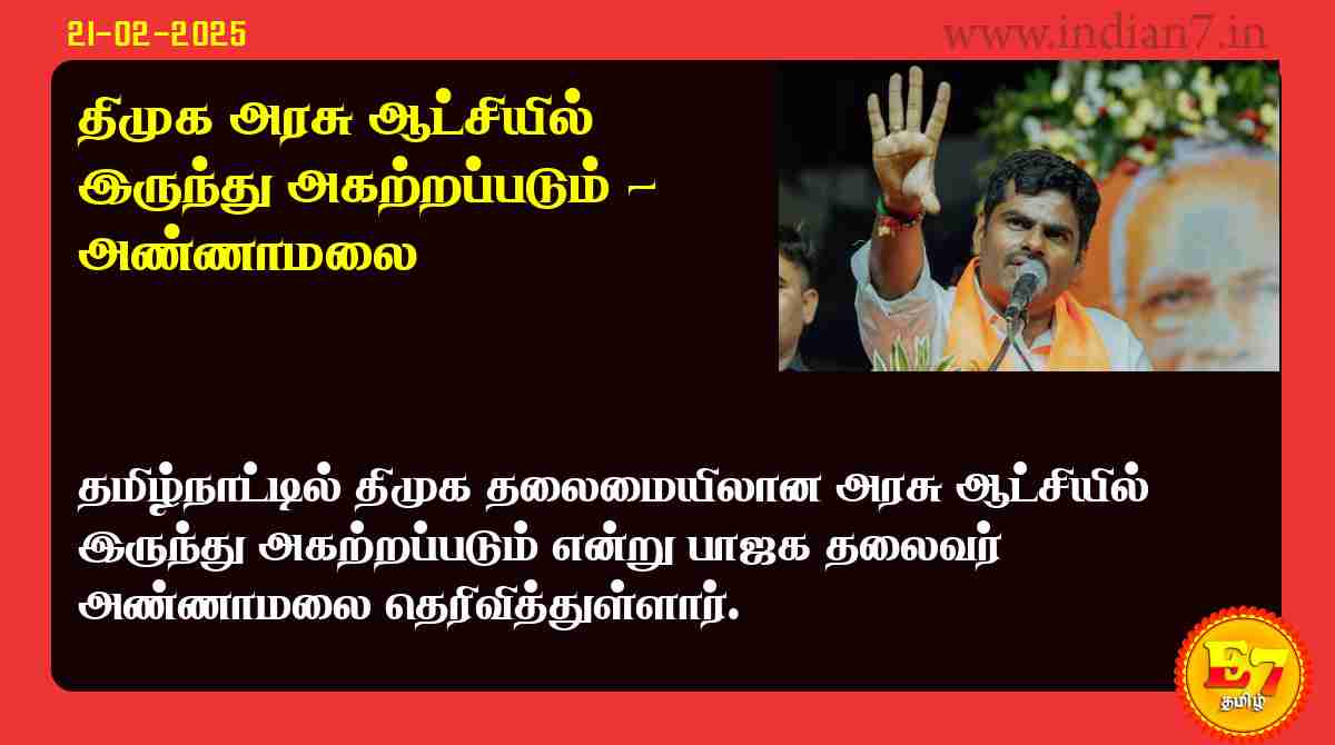 தமிழ்நாட்டில் திமுக தலைமையிலான அரசு ஆட்சியில் இருந்து அகற்றப்படும் என்று பாஜக தலைவர் அண்ணாமலை தெரிவித்துள்ளார்.