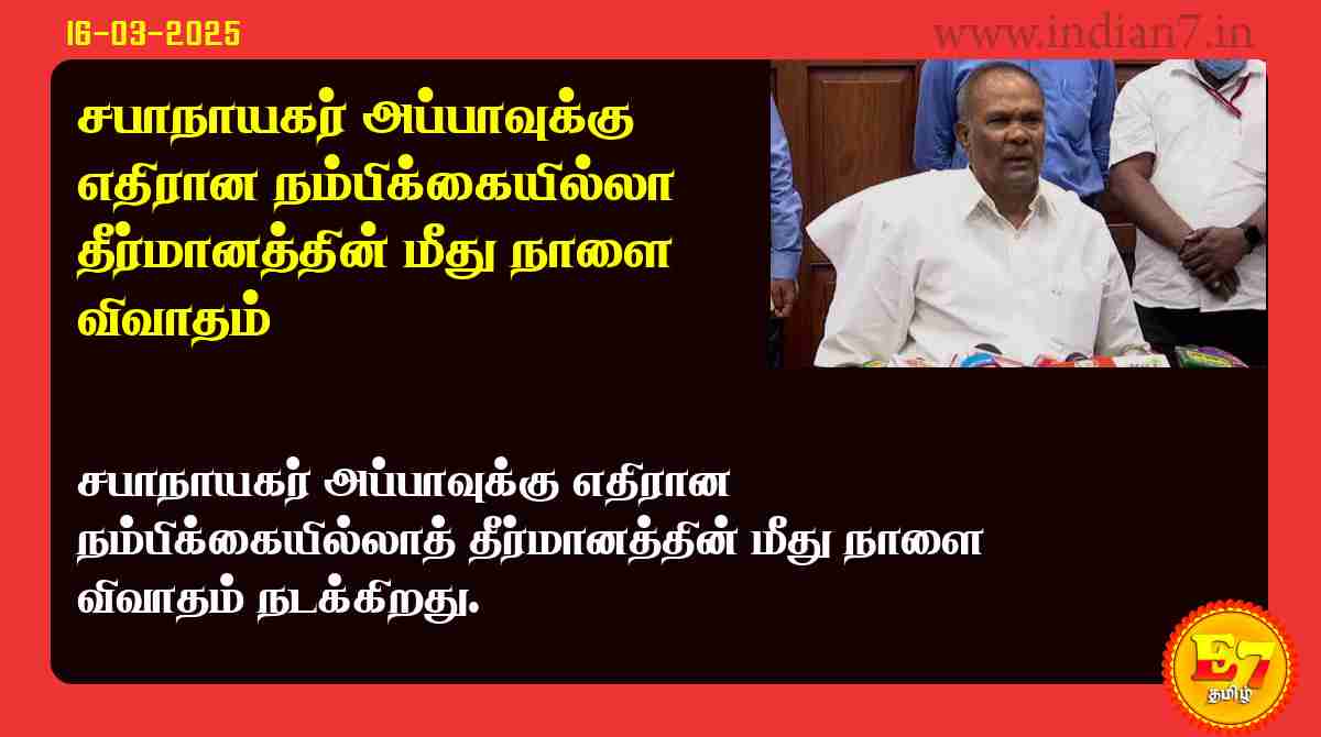 இந்நிலையில், சபாநாயகர் அப்பாவுக்கு எதிராக அ.தி.மு.க. எம்.எல்.ஏ.க்கள் அளித்துள்ள நம்பிக்கையில்லாத் தீர்மானம், நாளை (திங்கட்கிழமை) விவாதத்திற்கு எடுத்துக்கொள்ளப்படும் என சட்டசபை செயலாளர் சீனிவாசன் அறிவித்துள்ளார். நாளை நடக்கும் சட்டமன்ற கூட்டத்தின் தொடக்கத்தில் திருக்குறளை படித்து அவையை சபாநாயகர் அப்பாவு தொடங்கி வைப்பார். பின்னர், மறைந்த முன்னாள் எம்.எல்.ஏ.க்கள், டாக்டர் செரியன் ஆகியோருக்கு இரங்கல் தீர்மானம் வாசிக்கப்படும். அதன் பிறகு கேள்வி நேரம் நடைபெறும். கேள்வி நேரம் முடிந்ததும் நேரமில்லா நேரமான 'ஜீரோ ஹவர்' எடுக்கப்படும். அப்போது உதயகுமார் தனது தீர்மானத்தை உடனே வாக்கெடுப்புக்கு விடும்படி கோருவார். அல்லது வாக்கெடுப்பு நடத்துவதற்கு ஒரு நேரத்தை குறிக்கும்படி அவர் கோரலாம்.