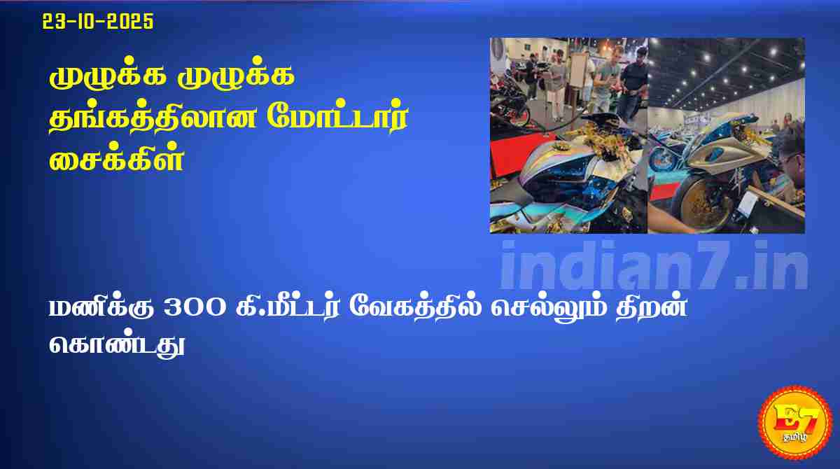 மணிக்கு 300 கி.மீட்டர் வேகத்தில் செல்லும் திறன் கொண்ட இந்த மோட்டார் சைக்கிளை அவர்கள் முழுக்க முழுக்க தங்கத்தில் வடிவமைத்திருந்தனர். இதன் விலை ரூ.1.67 கோடியாம். இதனை சுற்றி வாலிபர்கள் ஈக்கள் மொய்ப்பது போல சுற்றி வர அது தொடர்பான வீடியோ இணையத்தில் வெளியாகி வைரலாகி வருகிறது.