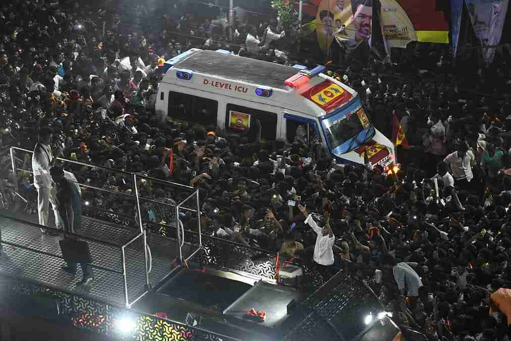 ஆனால், அதையும் மீறி, மருத்துவமனைக்குச் செல்வதாகக் கூறி, பல காலியான அவசர ஊர்திகள் கூட்டத்தினுள்ளே அனுப்பப்பட்டன. இவ்வாறு இடையூறு செய்வதற்காகவே ஒருசில செயல்பாடுகள் இருப்பதால்தான், சந்தேகத்தின்பேரில் கூறினோம். ஏனெனில், திமுக என்னென்ன செய்கிறார்கள் என்பதும் எங்களுக்குத் தெரியும்.ஒரு கூட்டம் நடக்கும்போது, கூட்டத்தினுள் 10 அவசர ஊர்திகளை விடுவது, 10 ஊர்திகளும் காலியாகவும், அவற்றின் ஓட்டுநர்களும் முழு போதையில் வருகின்றனர்.இவ்வாறு போதையில் வந்த அவசர ஊர்தி ஓட்டுநர்களைப் பிடித்த தவெக நிர்வாகிகள், காவல்துறையில் ஒப்படைத்தனர். ஆனால், அவர்களைக் காவல்துறை காப்பாற்றி அனுப்பி விட்டது.இவ்வாறு இடையூறு ஏற்படுத்தும் வாகனங்களைத்தான் நாங்கள் சுட்டிக் காட்டுகிறோம். தவிர, பொதுமக்களின் பயன்பாட்டில் இருப்பவற்றைத் தடுப்பதற்கு யாருக்கும் உரிமையில்லை என்று தெரிவித்தார்.