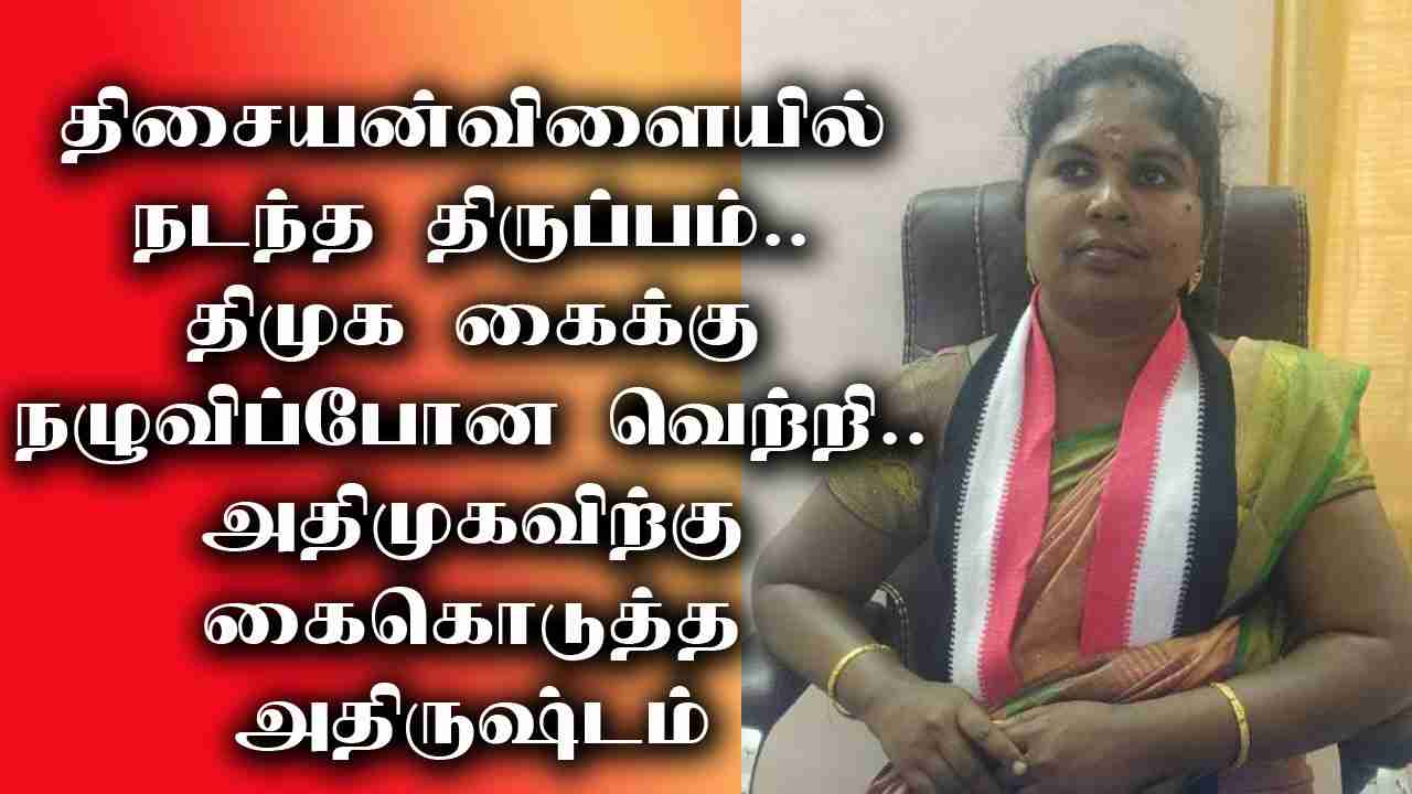 இதற்கிடையே திமுக சார்பில் சுபினா என்பவரை பேரூராட்சி தலைவராக திமுக அறிவித்தது. இன்று காலை திசையன்விளை பேரூராட்சி அலுவலகத்தில் தலைவர் தேர்வுக்கான தேர்தல் நடந்தது. ஆனால் திமுகவின் சுபினாவுக்கு திமுக சார்பில் ஆதரவு தெரிவிக்கவில்லை. இவருக்கு யாரும் முன்மொழியவில்லை. கமலா நேரு என்பவர் திமுக கூட்டணி சார்பில் கமலா நேரு என்பவர் தலைவராக்க முன்மொழிந்தனர்.